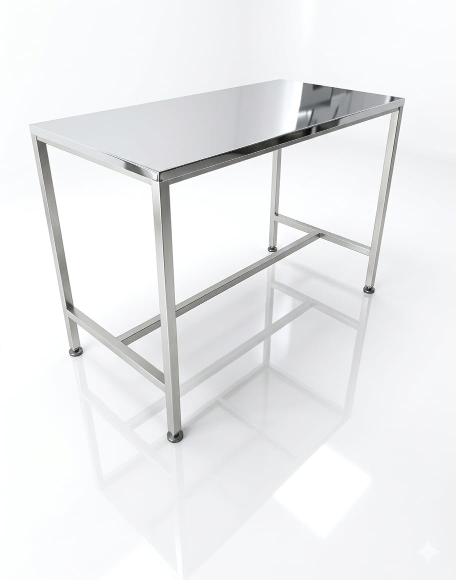 Mesa de acero inoxidable 0.6mm con refuerzo de madera obs 9.5mm, estructura de hierro 30x30mm pintada epoxi termoconvertible.
